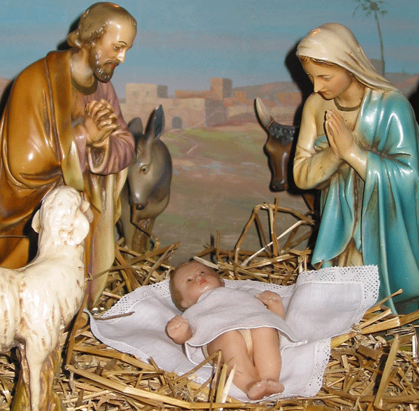 We will stop in the rear of the chapel, face the crib and offer the Light Proclamation: “Light and peace in Jesus Christ Our Lord.”